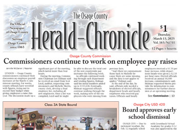 Read about the ongoing discussions in the Osage County Commission for employee pay raises, in this week’s edition of The Herald-Chronicle online now.