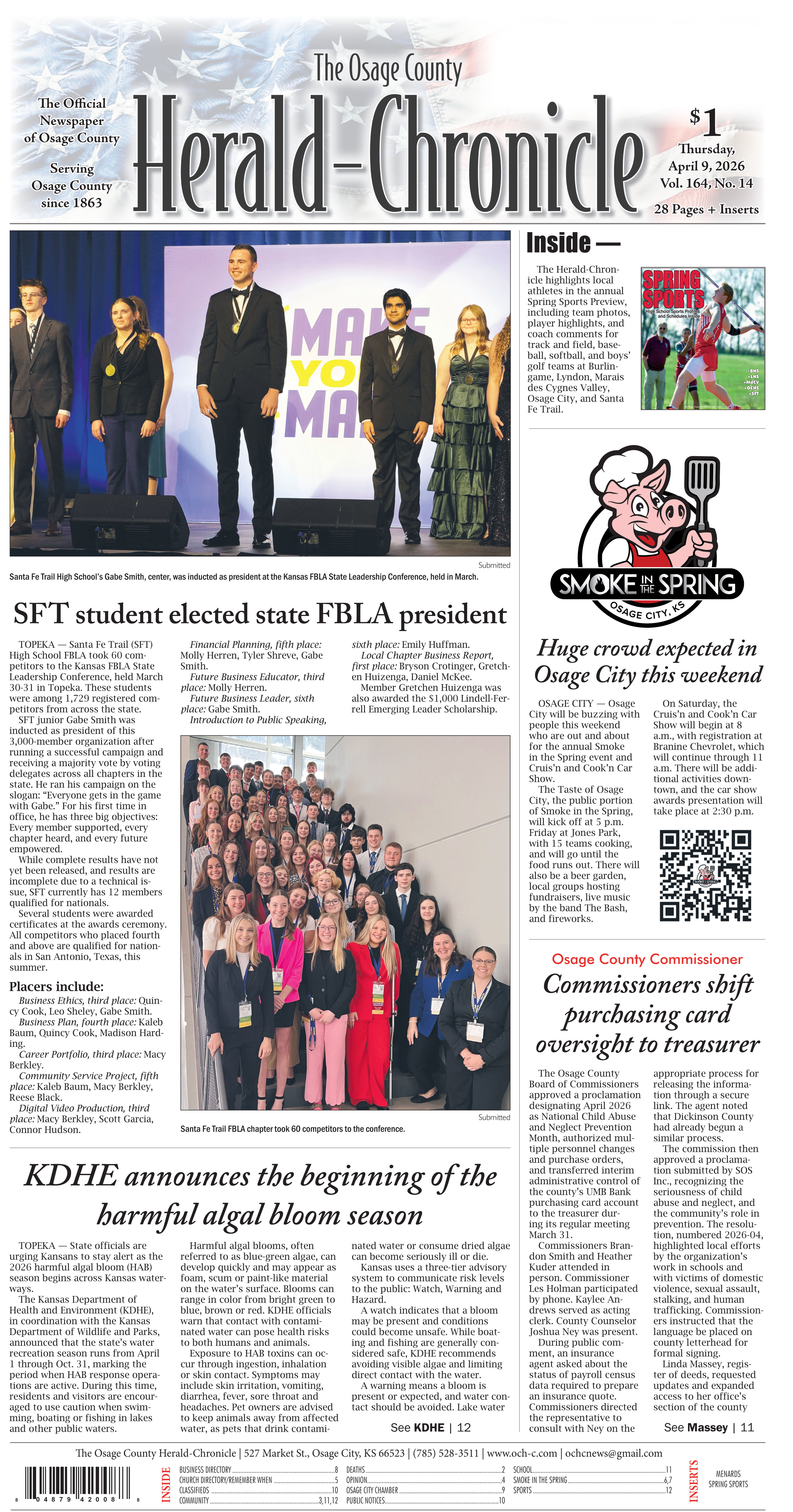 Read about Osage City's Smoke in the Spring set for April 10-11, in this week's edition of The Herald-Chronicle...